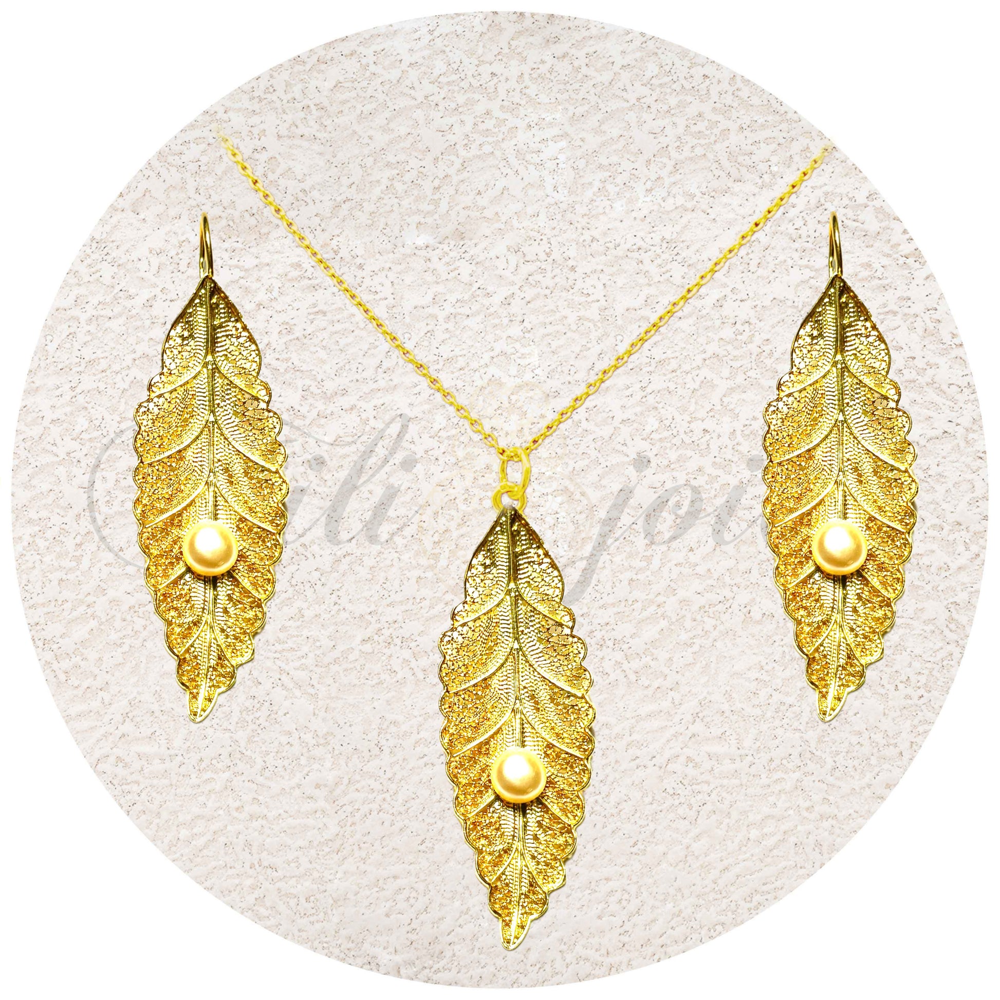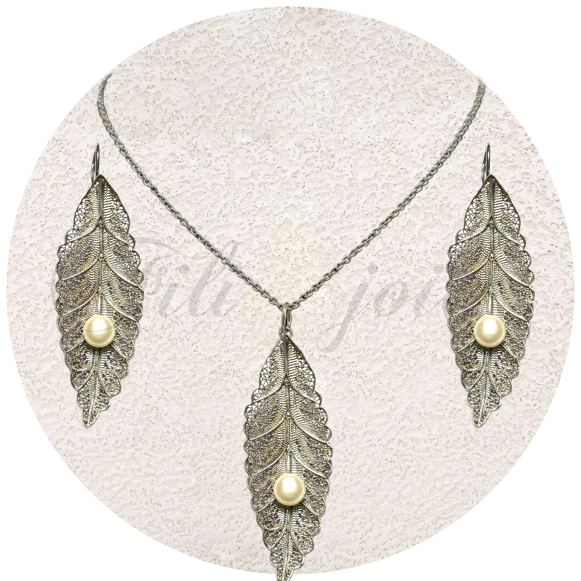 Conjunto Folha de Filigrana com Pérola